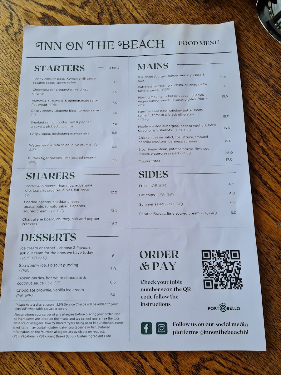 A key highlight is the dessert menu, particularly the sticky toffee pudding, which delivers the perfect combination of sweetness and richness, topped with a generous drizzle of warm caramel sauce. The selection of craft beers and wines also pairs beautifully with the meals, offering a well-rounded dining experience by the beach.